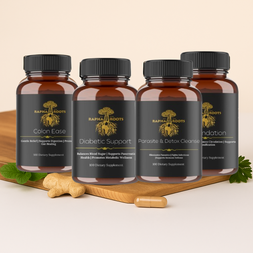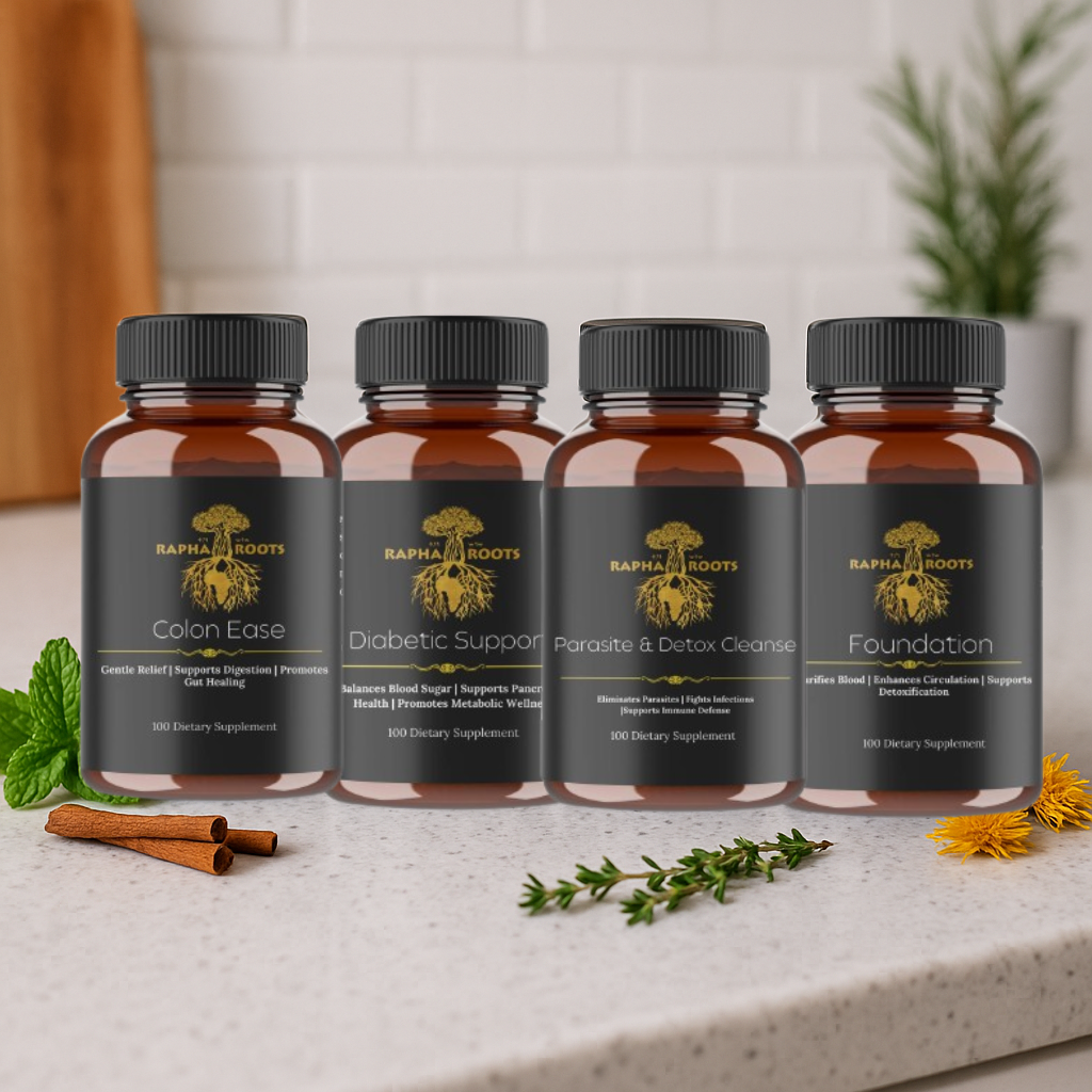That’s why we created the Rapha Roots Digestive Bundle — a powerful, plant-based system crafted with whole herbs, not lab-made extracts or watered-down formulas. Each ingredient is carefully chosen for its ability to naturally support detoxification, balance blood sugar, eliminate parasites, and promote regular, healthy bowel movements.