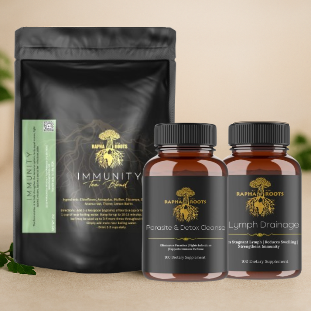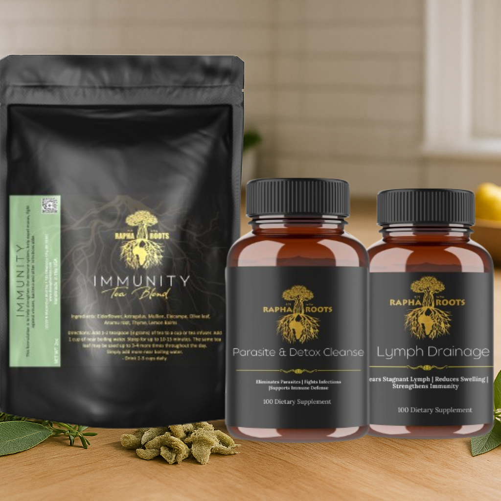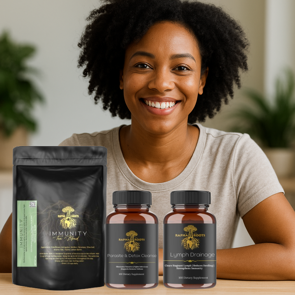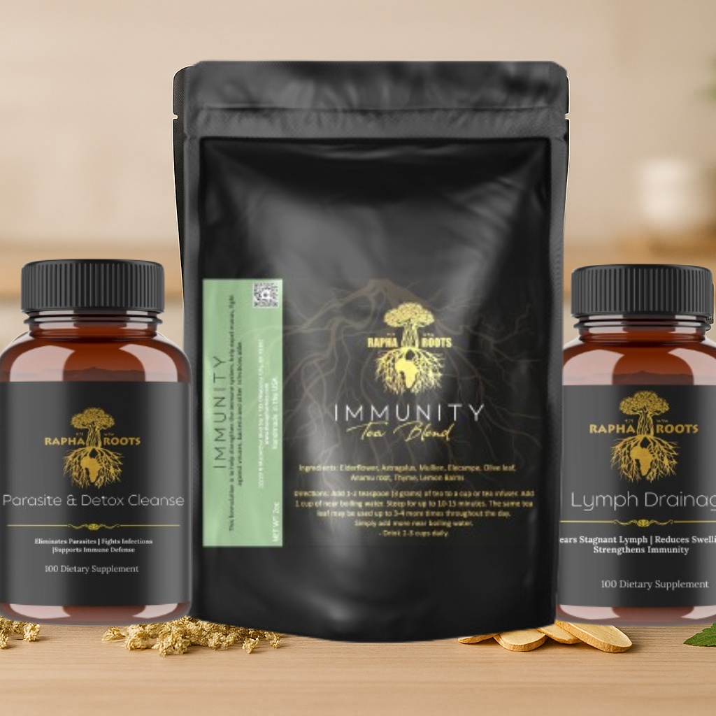 At Rapha Roots, we know true healing starts with what the Most High already provided: powerful, organic herbs working in harmony. That’s why we designed the Immunity Bundle — to help you strengthen your defenses, release toxic build-up, and restore full-body balance, all in one simple system.