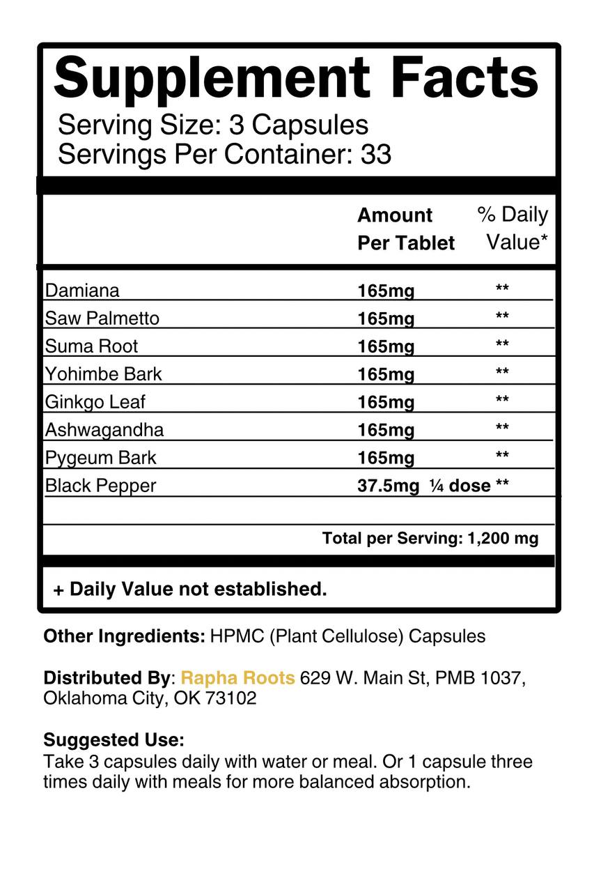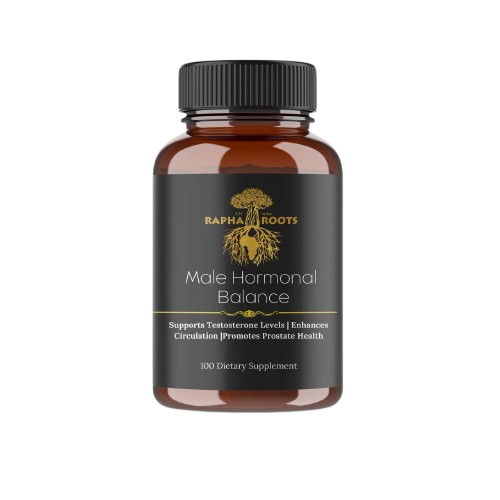 Rapha Roots Male Hormonal Balance is a powerful testosterone supplement formulated with eight organic herbs to restore masculine vitality naturally. This male hormone balance supplement combines Damiana, Ashwagandha, Shilajit, and Saw Palmetto to boost libido, improve energy, support prostate health, and enhance performance. Unlike synthetic boosters, this whole-herb formula works with your body to address the root causes of hormonal decline.
